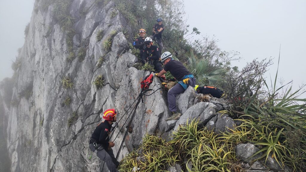 Rescatan a mujer lesionada tras caída en el Pico Horcones en La Huasteca