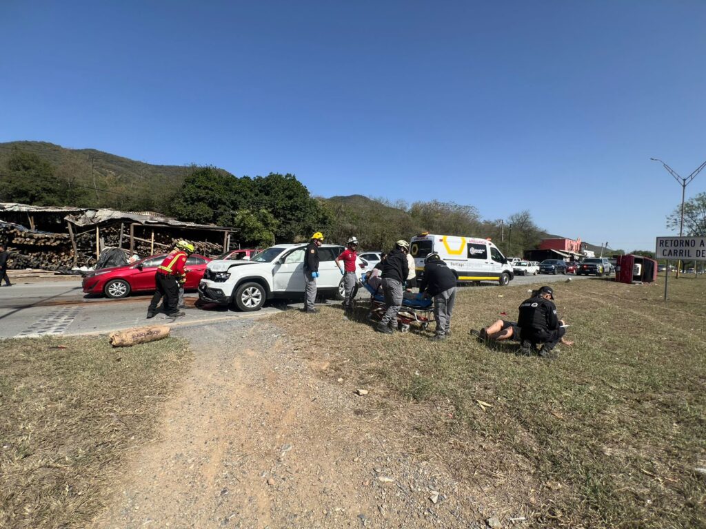 Elementos de Protección Civil de Nuevo León atendieron el reporte de incendio de una pipa sobre la Autopista a Reynosa,...