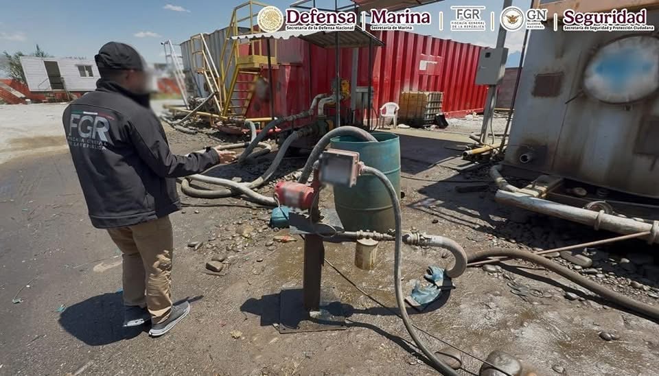 Durante la inspección, las autoridades confiscaron también un tractocamión, 10 pipas, 10 contenedores móviles y tanques para almacenamiento de combustible.