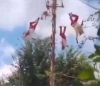 CIUDAD DE MÉXICO (apro).- En redes sociales circulan videos que muestran a cinco Voladores de Papantla que realizaban la danza tradicional en el marco de una fiesta patronal en la comunidad de El Águila, en el municipio de Tihuatlán, en el norte del estado de Veracruz, cuando el hojancho (madero que sirve de eje central) colapsó.