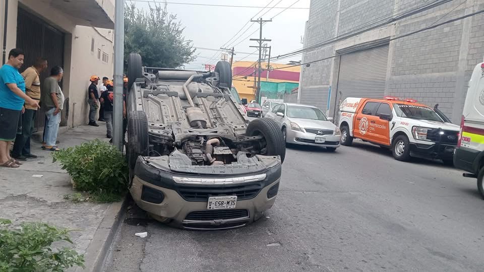 Elementos de Protección Civil de Nuevo León atendieron esta mañana un accidente vial tipo volcadura registrado en el cruce de las calles 16 de Septiembre y Guanajuato, en la Colonia Independencia de Monterrey.