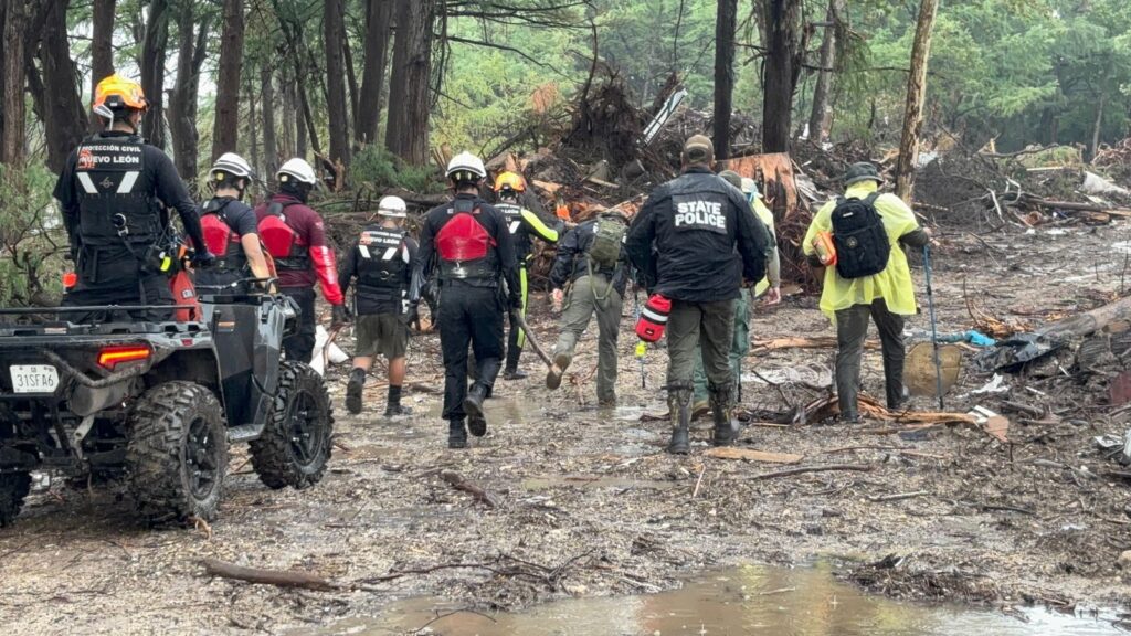 Este lunes se reanudaron las labores de búsqueda de personas desaparecidas en la comunidad de Hunt, Kerrville, Texas, donde elementos de Protección Civil de Nuevo León instalaron un punto de vigilancia en las inmediaciones del campamento Mystic para monitorear la corriente del Río Guadalupe.