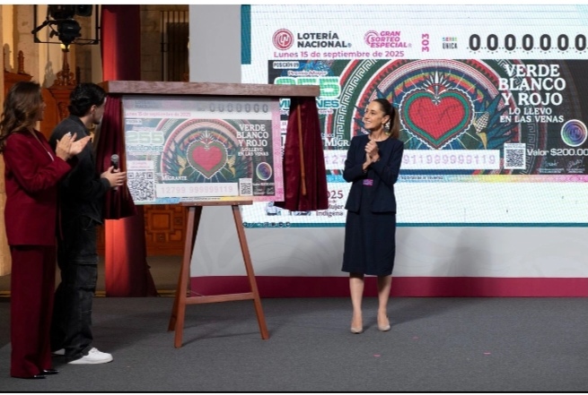 Ciudad de México (La Jornada).-La presidenta Claudia Sheinbaum Pardo invitó este viernes a participar en el sorteo especial de la Lotería Nacional “México con M de Migrante”, que se celebrará el próximo 15 de septiembre con una bolsa de premios de más de 424 millones de pesos. En su rueda de prensa matutina en Palacio Nacional, destacó que los recursos que se obtengan por la venta de billetes se destinarán a fortalecer el apoyo a los migrantes mexicanos en Estados Unidos a través de la red consular. “El 15 de septiembre está dedicado a nuestros hermanos migrantes… ¡Que vivan los migrantes! México se escribe con M de migrante”, expresó.