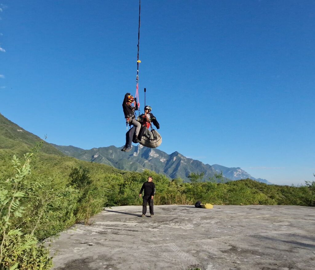 Rescatan en helicóptero a parapentista en zona de difícil acceso en Santiago, NL