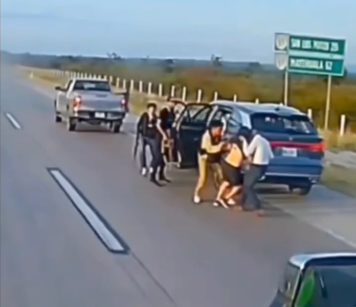 En redes sociales circula un video que muestra el momento de un presunto levantón de un conductor que viajaba en un vehículo con placas de Texas, en hechos registrados en la carretera 57, a la altura de Matehuala, San Luis Potosí.
