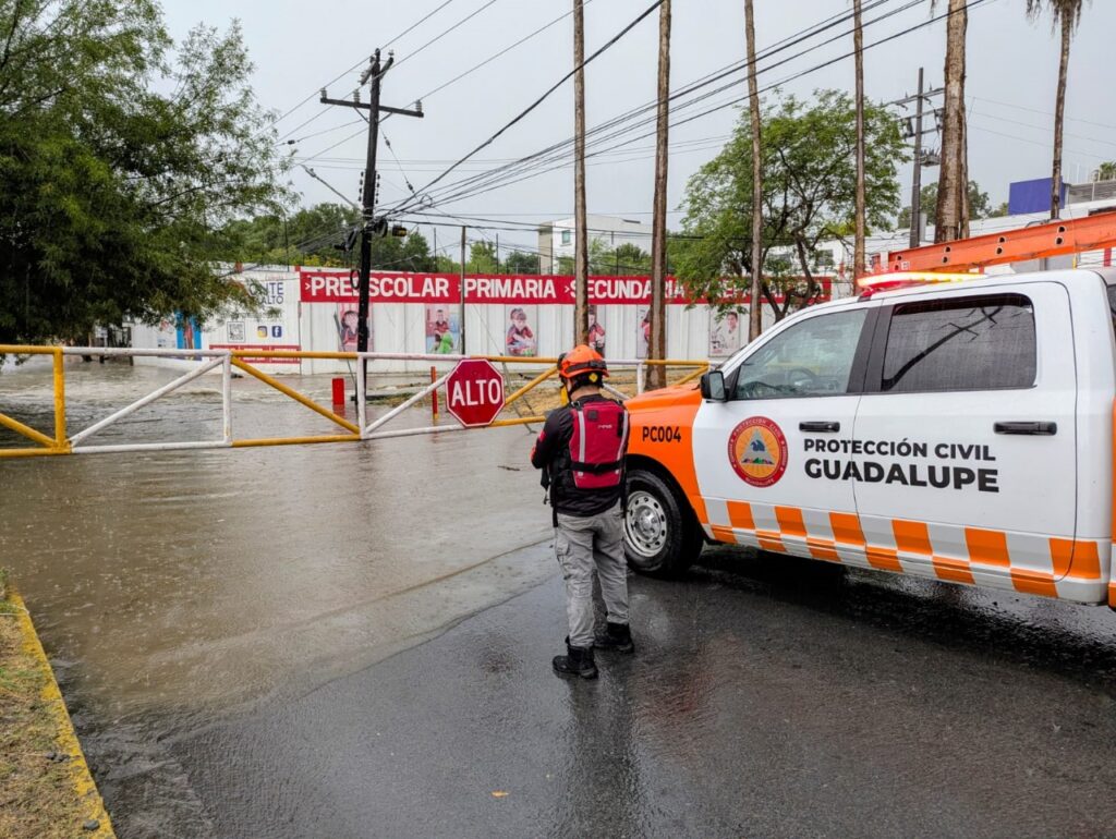 Debido a los escurrimientos provenientes del Cerro de la Silla, ocasionados por la lluvia registrada esta mañana, el Gobierno de Guadalupe, a través de Protección Civil Municipal, implementó un operativo de presencia preventiva en diversos puntos vulnerables de la ciudad.