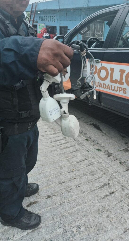 Elementos de la Secretaría de Seguridad Pública de Guadalupe retiraron cámaras de videovigilancia colocadas de manera ilegal en la vía pública, las cuales presuntamente eran utilizadas por grupos del crimen organizado para monitorear los movimientos de las autoridades.