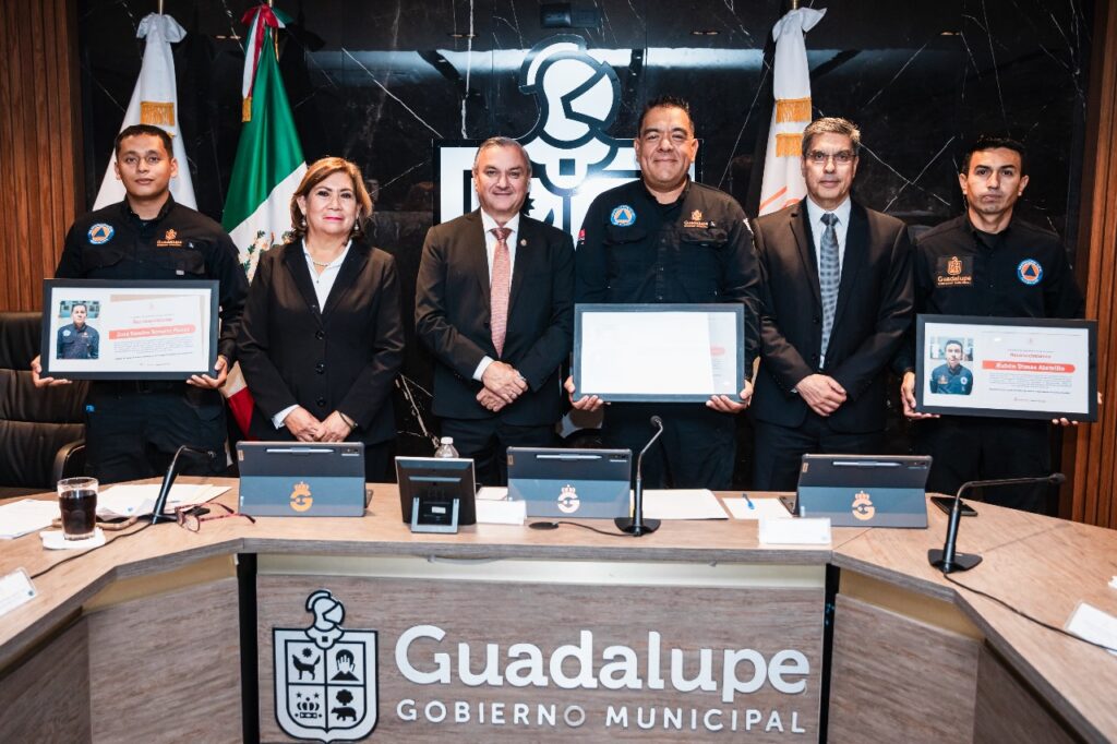 Por su participación en el despliegue internacional de apoyo humanitario en Texas, Estados Unidos, el pasado mes de julio, tres elementos de Protección Civil del Municipio de Guadalupe recibieron reconocimiento del alcalde Héctor García y de los integrantes del Cabildo.