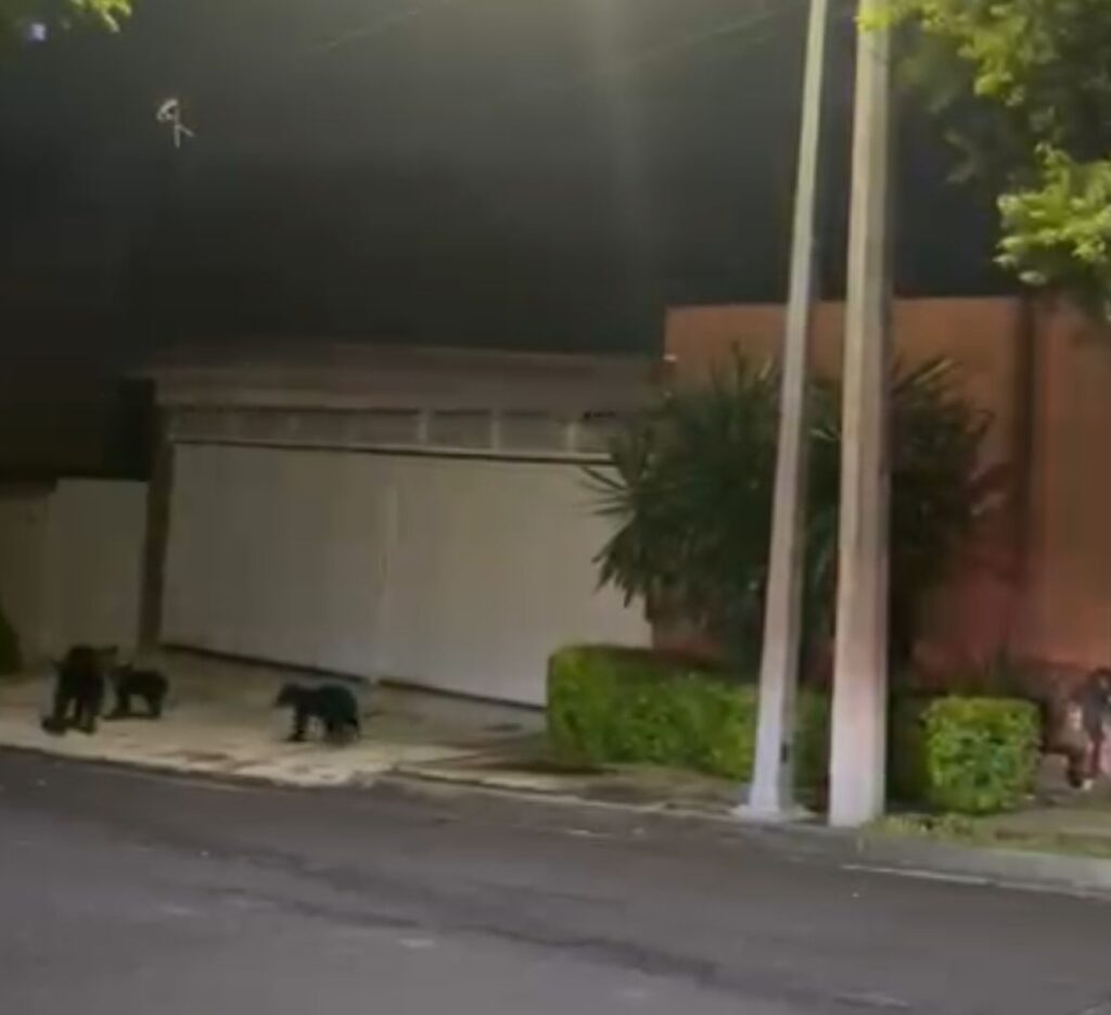 La Unidad de Protección Civil de Nuevo León atendió la madrugada de este sábado un reporte de un oso adulto y tres cachorros que trepaban un árbol de aproximadamente 3 metros en la intersección de Ignacio Manuel Altamirano y Matancillas.