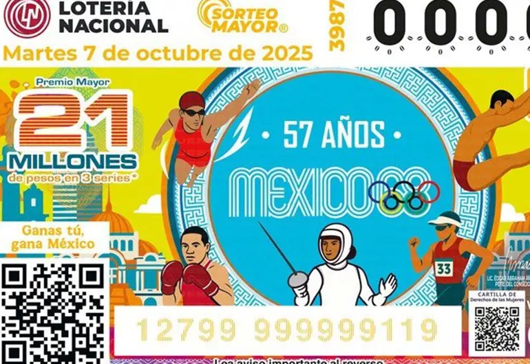 Lotería Nacional rinde homenaje a México 68 con billete conmemorativo