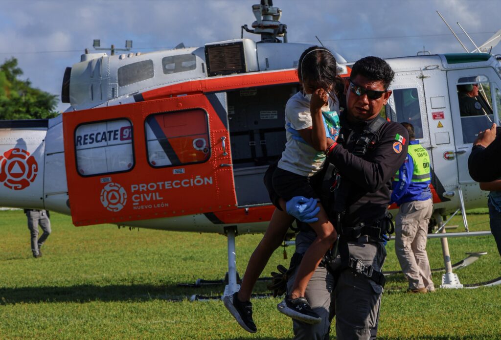 Las acciones se llevaron a cabo en la comunidad de Oviedo, donde con el apoyo del helicóptero de Protección Civil Nuevo León se implementó un puente aéreo para distribuir ayuda humanitaria y atender a la población afectada.