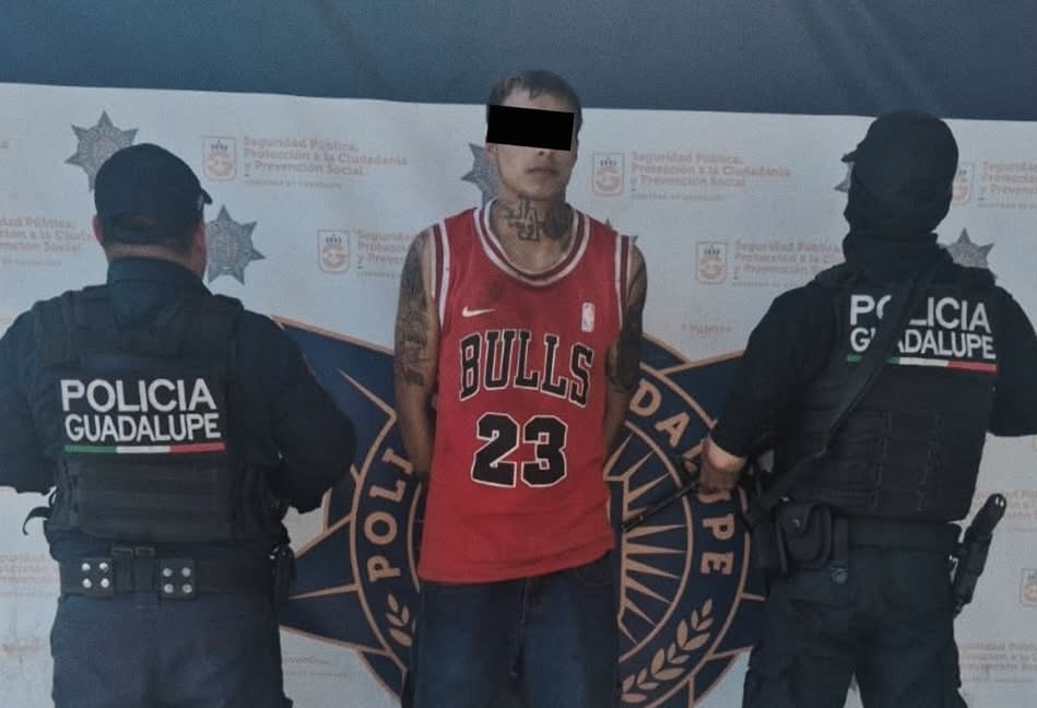 Elementos de la Secretaría de Seguridad Pública, Protección a la Ciudadanía y Prevención Social de Guadalupe detuvieron a un hombre identificado como Cristian Alejandro “N”, alias “El Piñas”, de 22 años de edad, quien estaría relacionado con al menos 32 robos con violencia y cuenta con una orden de aprehensión vigente por delitos contra la salud.