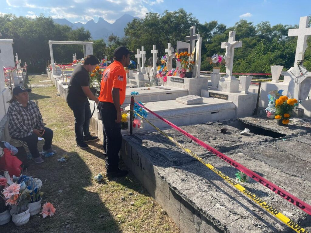 Monterrey, Panteón Tepeyac: un hombre cayó de dos metros al interior de una tumba.