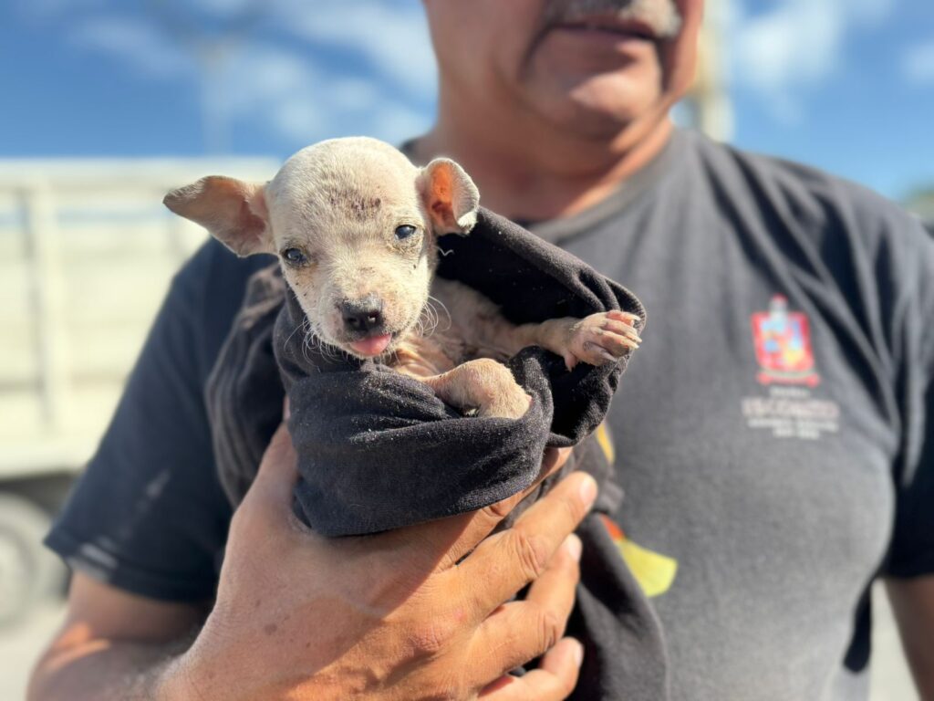 Gracias a la colaboración ciudadana y al trabajo conjunto de dependencias municipales y estatales, este sábado se logró poner a salvo a un pequeño perro que se encontraba atrapado dentro de una tubería de drenaje en la Calle Dignidad, de la Colonia Balcones del Norte.