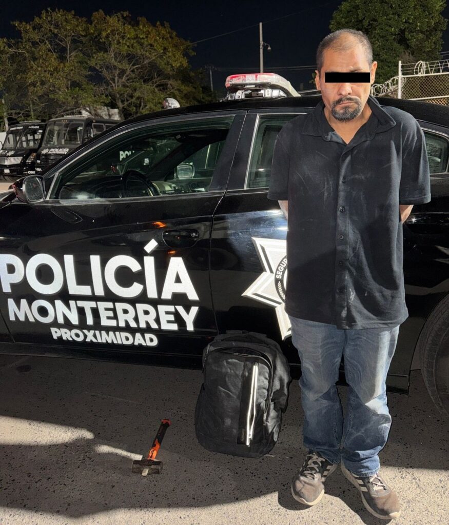 Policía de Monterrey lo detiene por robo tipo boquetazo a negocio