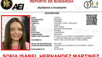 La Agencia Estatal de Investigaciones emitió un reporte de búsqueda para dar con el paradero de Sofía Isabel Hernández Martínez, una joven de 26 años que desapareció el pasado 9 de diciembre en la colonia Los Elizondos, en el municipio de Escobedo.