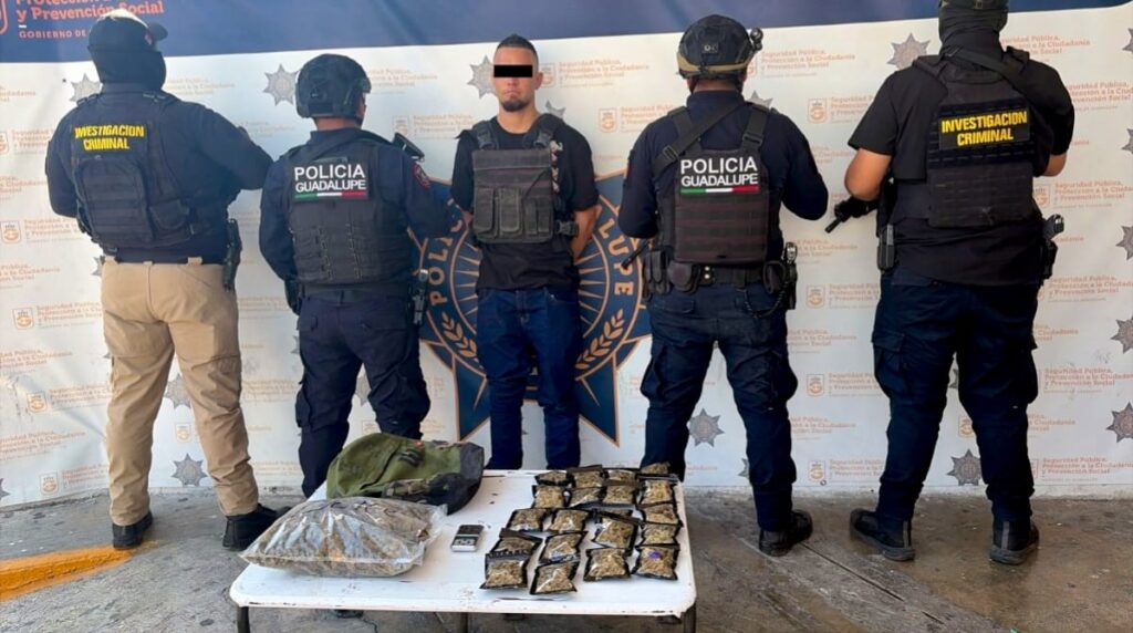Detienen en Guadalupe a presunto distribuidor de droga con chaleco balístico
