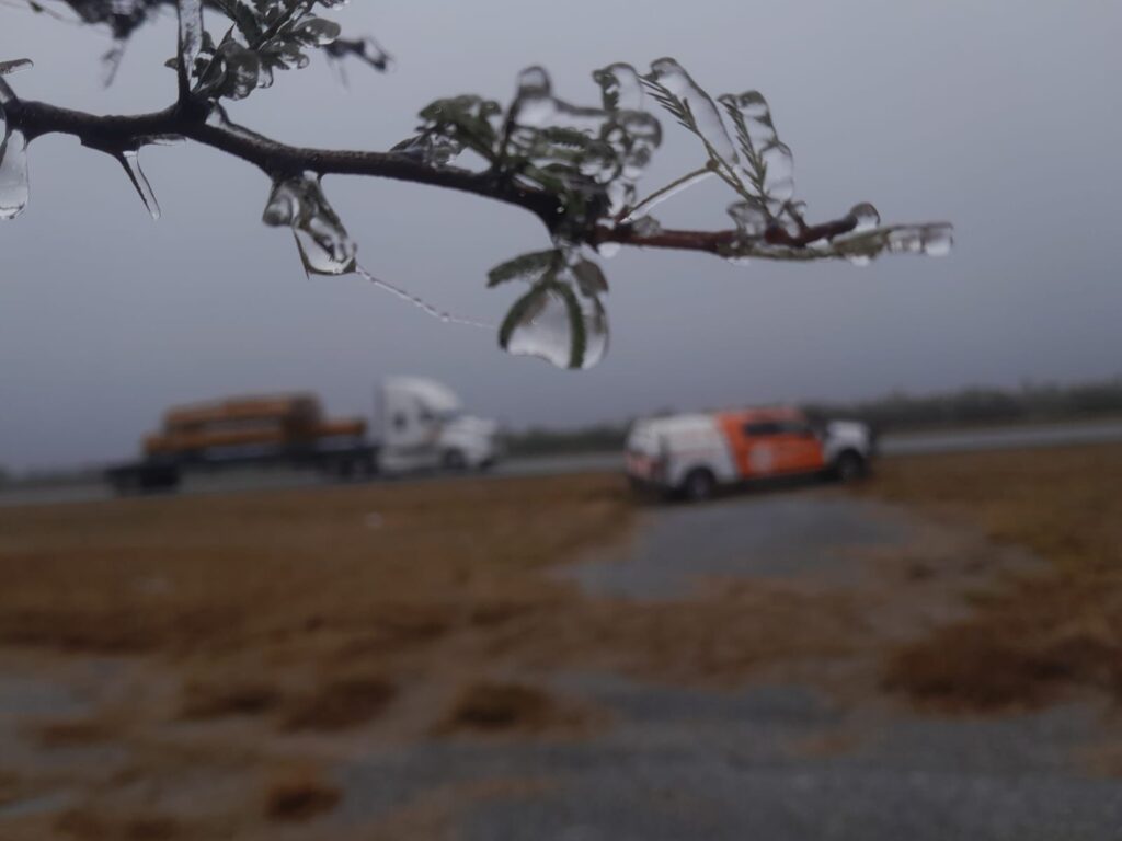 Protección Civil de Nuevo León informó que este domingo 25 de enero de 2026 se registran condiciones de neblina y formación de hielo en el municipio de Salinas Victoria, específicamente en la Autopista a Laredo, a la altura del kilómetro 57.