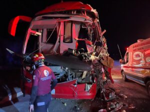 Un choque entre un autobús de pasajeros y un tráiler dejó como saldo cinco personas lesionadas durante la madrugada de...