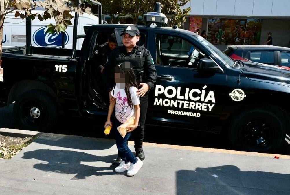En el operativo de seguridad por las compras del Día del Amor y la Amistad, oficiales de la Policía de Monterrey localizaron a una niña que se había extraviado en el centro de la ciudad.