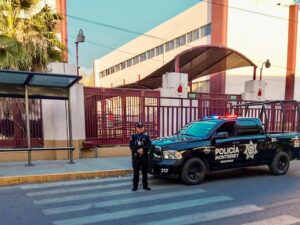 Oficiales de la Policía de Monterrey mantienen seguridad en las Preparatorias de la UANL, ante las presuntas amenazas que se...